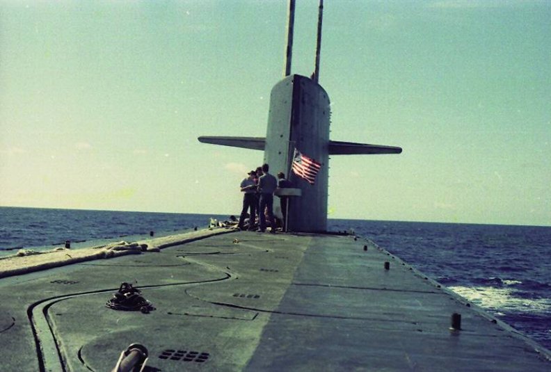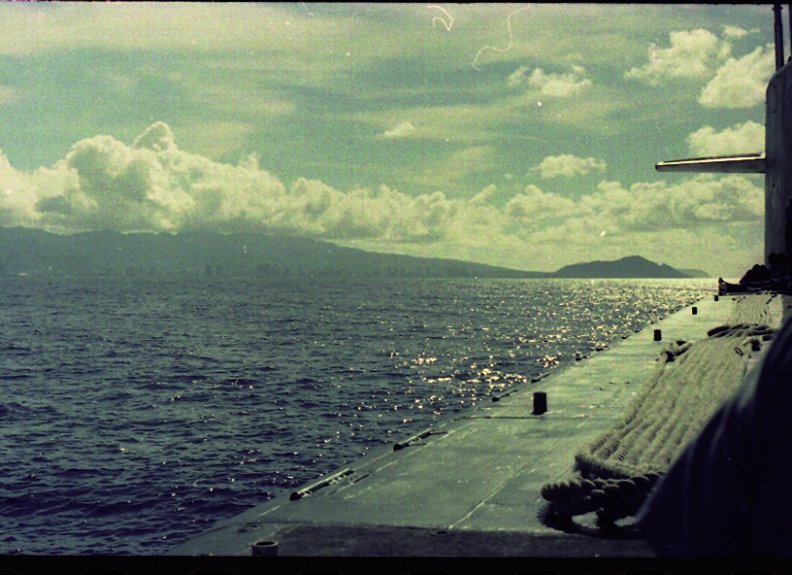These shots were taken by EM3 Barnett (a.k.a. EMC Barnett retired) prior to pulling in at PH at the end of Patrol 54 (circa 1980). We were waiting for a slow target to get out of our way in the channel so we did slow circles in front of Waikiki to entertain the tourists. You are looking at the last shot of the SSBN we knew and (loved?). 2 weeks later, she was dubbed an SSN.